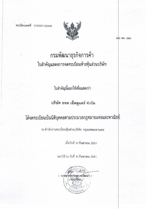 หนังสือรับรอง ออล เอ็ดดูแคร์