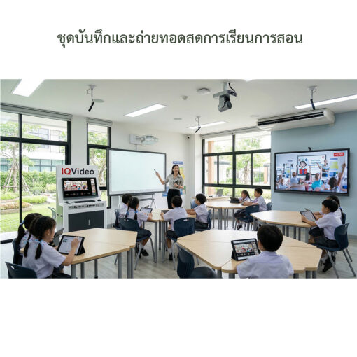 ห้องเรียน สำหรับ ชุดบันทึกและถ่ายทอดสดการเรียนการสอน ระบบใหม่ รองรับการ ถ่ายทอดสด นักเรียน และอาจารย์ผู้สอนได้ และ สามารถถ่ายทอดสด ได้หลาย platform ทั้ง you tube , facebook, tiktok พร้อมเครื่องช่วยในการถ่ายทอดสดและเครื่องบันทึกการเรียนการสอน สมัยใหม่ มีระบบ จอโพเดี่ยมที่เหมาะสำหรับ อาจารย์ผู้สอนได้ใช้งาน รองรับการ ระหว่าง คอมพิวเตอร์นักเรียน และ คอมพิวเตอร์อาจารย์ โดยสามารถแชร์การเขียน หรือ แสดงภาพ หรือ วีดีโอ ไปแสดงที่หน้าจอสัมผัสอัจฉริยะ ได้