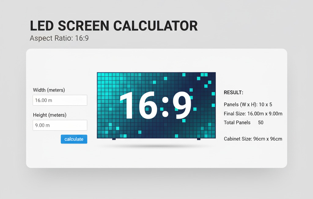 🧮 คำนวณตู้ LED 96×96 ซม.