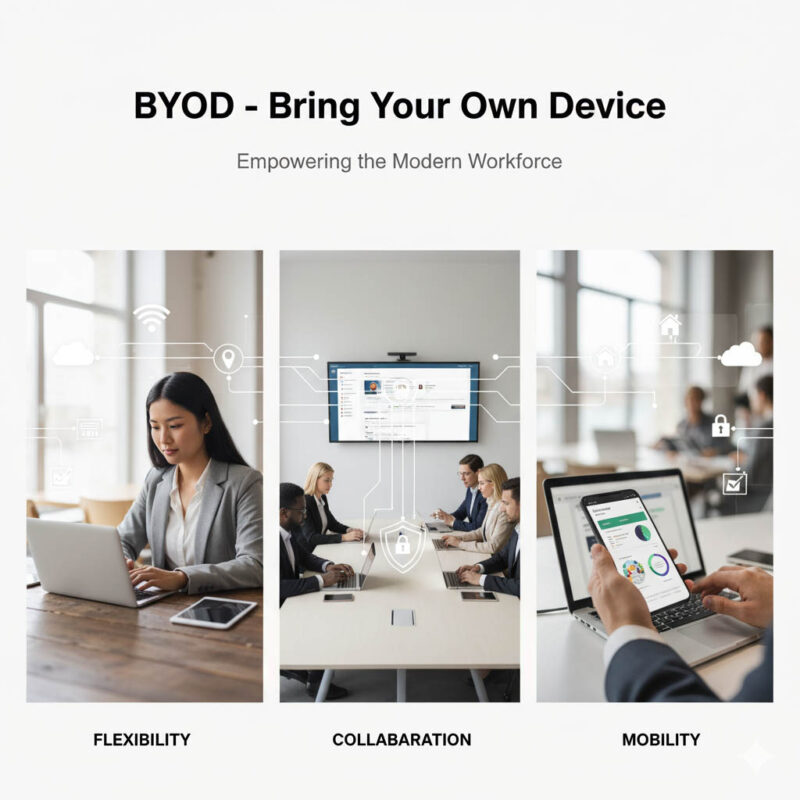 BYOD เป็นนโยบายที่อนุญาตให้พนักงานใช้ อุปกรณ์ส่วนตัว—ไม่ว่าจะเป็นแล็ปท็อป โทรศัพท์มือถือ หรือแท็บเล็ต—เพื่อเข้าถึงทรัพยากรขององค์กร เช่น อีเมล ระบบคลาวด์ ไฟล์งาน หรือเครือข่ายภายในบริษัท แนวคิดนี้เป็นสากลและครอบคลุมกิจกรรมการทำงานที่หลากหลาย ไม่ได้จำกัดอยู่แค่ในห้องประชุมเท่านั้น แต่รวมถึงการทำงานจากที่บ้าน คาเฟ่ หรือระหว่างเดินทาง